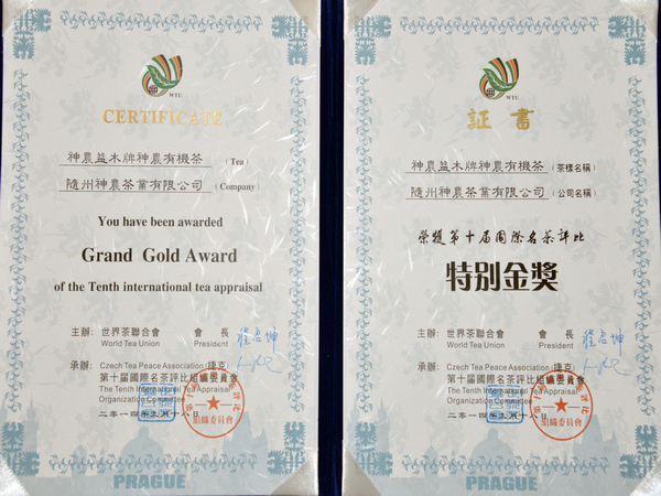 “神農(nóng)有機(jī)茶”榮獲第十屆國(guó)際名茶評(píng)比“特別金獎(jiǎng)”