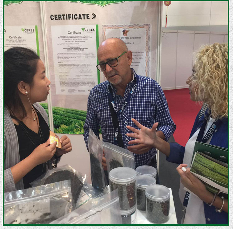 公司外貿(mào)工作人員在德國(guó)漢堡參加茶博會(huì),下圖為展會(huì)現(xiàn)場(chǎng)一角: