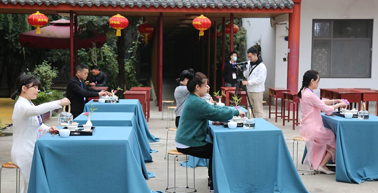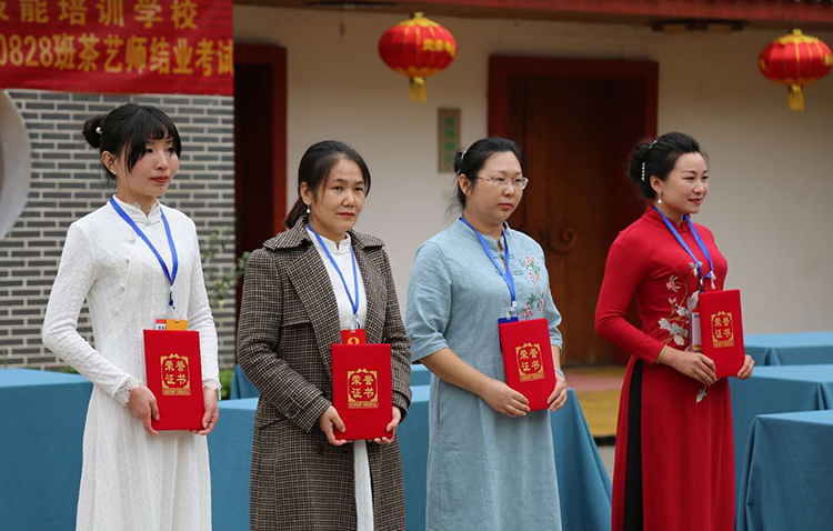 以賽代考期間,參賽表演茶藝的本屆學員全部過關(guān),并評出周湘平、喻光萍、王紅梅、包云嬌四名優(yōu)秀班主部和周曉平、黃思誠、甘春芬、張瑋四名優(yōu)秀學員;市人社局趙局長在賽前講話,教師代表王老師寄語,一干學員和友人在賽藝間隙也載歌載舞,一展才藝。整個賽場氛圍活躍而又不失賽考的莊重另附典雅。